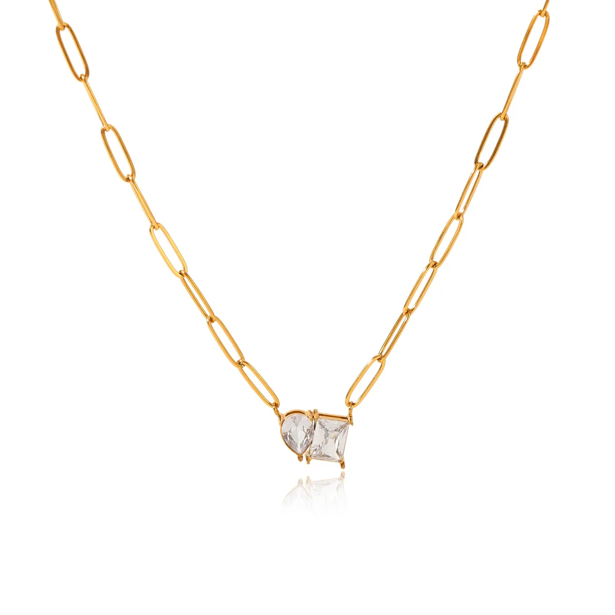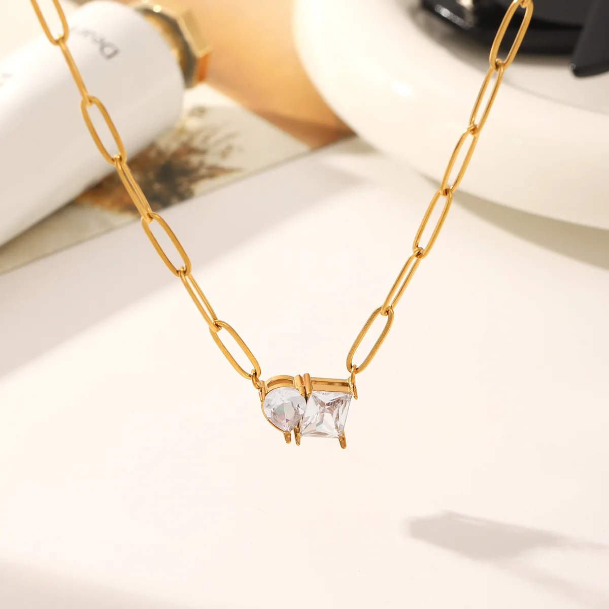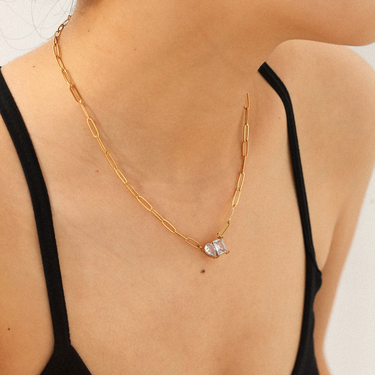 MW Fashion Tarnish Free Jewelry Zircon Pendant 18K Gold Plated Jewelry Stainless Steel Minimalist Necklace